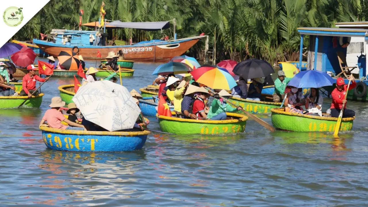 The secret to renting a cheap coconut forest boat in Bảy Mẫu for tourists in Đà Nẵng. Experience the boat dance and explore the nature of the village with Hoa Family Hội An.